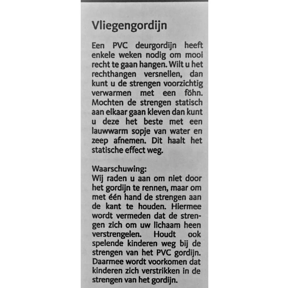 2Lif Saba Vliegengordijn werkt uitstekend om vliegen en ander ongedierte buiten de deur te houden. De strengen zijn 4 cm breed. Het gordijn is zowel in de lengte als in de breedte in te korten. Dit vliegengordijn is in 2 maten verkrijgbaar.