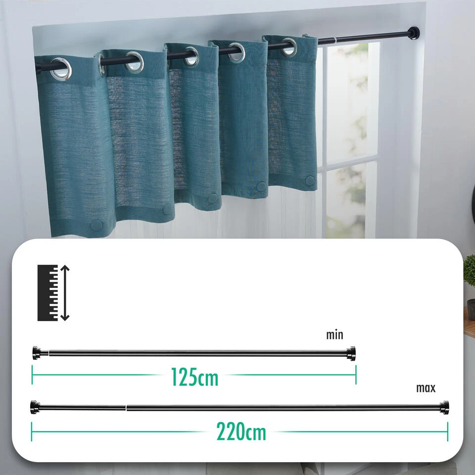 Deze gordijnroede werkt met een zelf opspannend systeem, waardoor u geen gaten hoeft te boren in uw muren. de rail kan aanpassen aan de lengte van uw ramen.