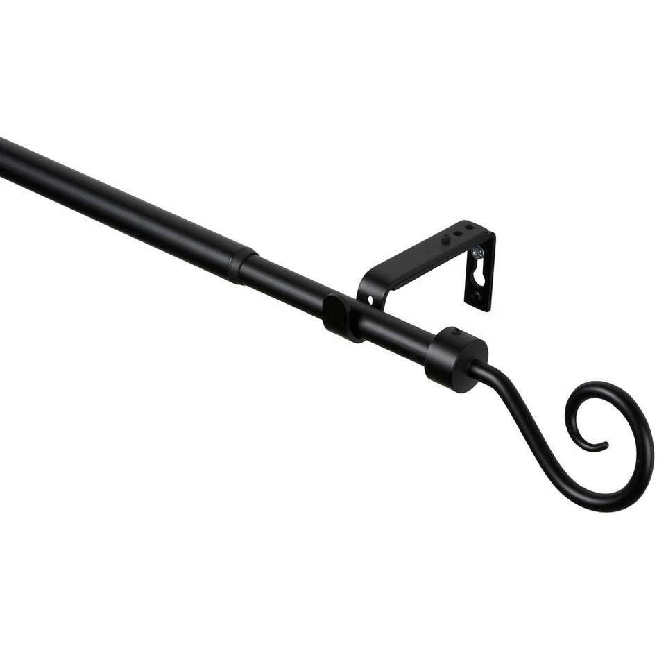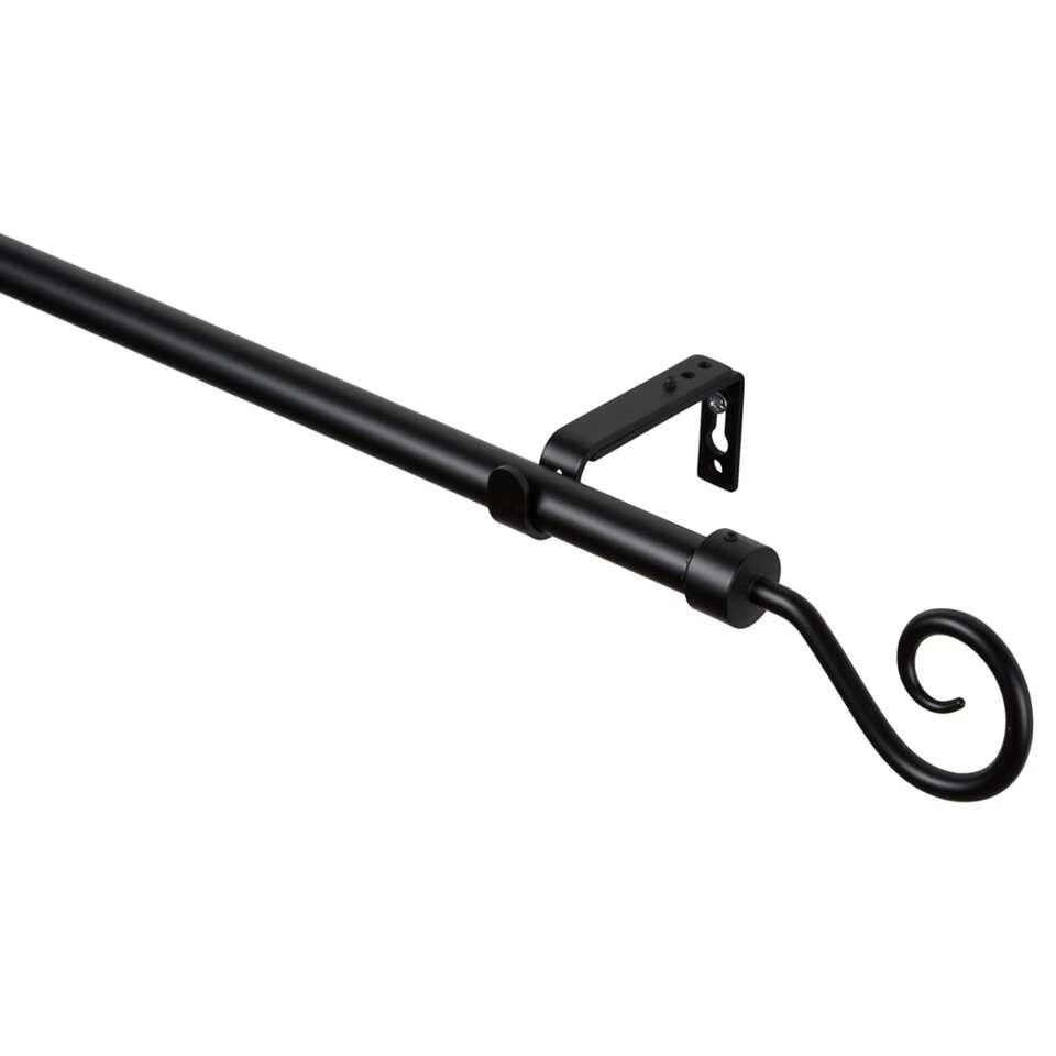 Met deze complete set heeft u een gordijnroede inclusief eindknoppen en steunen; zo bent u in een keer geslaagd. Deze zwarte set is geschikt voor maten tussen 160 en 300cm.