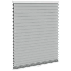De 45mm brede plisségordijnen zijn zeer geschikt voor grote raampartijen. Dit mooie plisségordijn van Fenstr heeft een dubbele stof en is verduisterend. De stof is lichtgrijs van kleur met een witte achterkant, waardoor licht en warmte extra goed gereflecteerd worden. In 5 eenvoudige stappen bepaal jij de afmetingen en afwerking, waardoor je verzekerd bent van een plisségordijn naar jouw smaak!