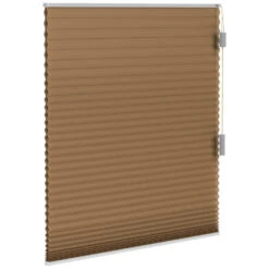 Dit mooie plisségordijn van Fenstr heeft een dubbele stof en is verduisterend. Dit maakt het plisségordijn zeer geschikt voor bijvoorbeeld de slaapkamer of kinderkamer. De stof is tabak van kleur met een meekleurende achterkant, waardoor het plisségordijn er van buitenaf net zo mooi en sfeervol uitziet als binnen. In 5 eenvoudige stappen bepaal jij de afmetingen en afwerking, waardoor je verzekerd bent van een plisségordijn naar jouw smaak!