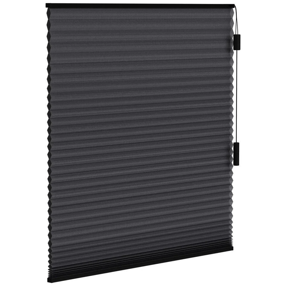 Dit mooie plisségordijn van Fenstr heeft een dubbele stof en is lichtdoorlatend. Het plisségordijn laat zacht gefilterd licht door en tegelijkertijd is het niet mogelijk om er doorheen te kijken, waardoor privacy bewaard blijft. De stof is zwart van kleur met een meekleurende achterkant, waardoor het plisségordijn er van buitenaf net zo mooi en sfeervol uitziet als binnen. Dit maakt het plisségordijn perfect voor de woonkamer of werkkamer. In 5 eenvoudige stappen bepaal jij de afmetingen en afwerking, waardoor je verzekerd bent van een plisségordijn naar jouw smaak!