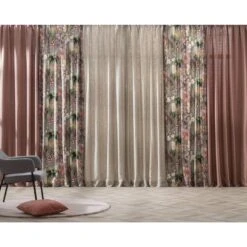 Lichtdoorlatende gordijnstof. Multikleur. Deze velvet stof stof heeft een velourse luxe uitstraling. Stevig, vormvast en soepel. 140 cm breed.