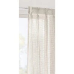 Soepel vallende inbetween met geweven lijnenpatroon. Creme. Hoogte 295 cm.