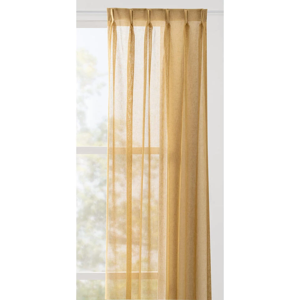 - Een dun geweven gordijnstof met een natuurlijke valling