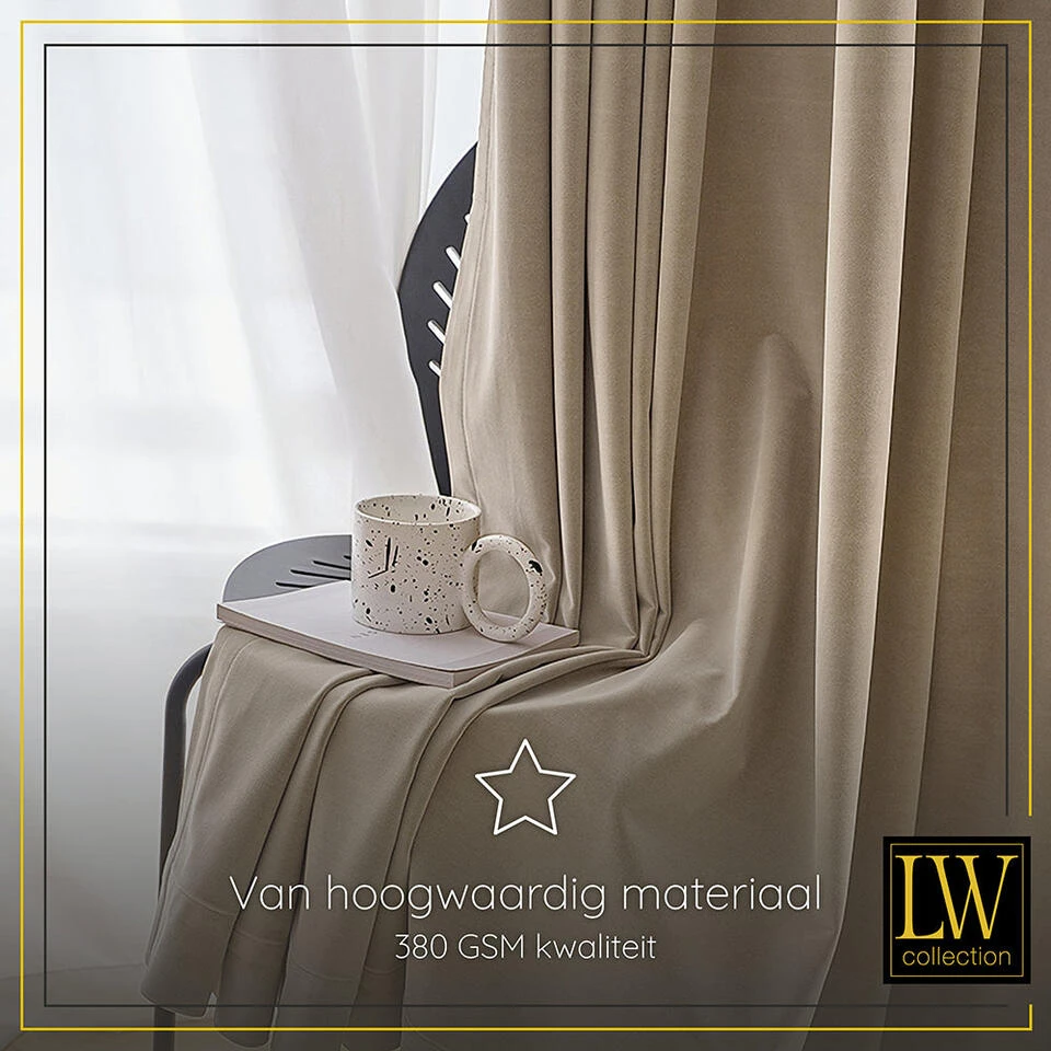Ben jij ook op zoek naar prachtige verduisterende velvet gordijnen? De luxe verduisterende gordijnen van het merk LW Collection zijn verduisterend en het materiaal is van hoge kwaliteit 380GSM. Dit maakt de gordijnen extra stevig en gaan hierdoor extra lang mee. Deze prachtige fluwelen velvet stof gordijnen passen bij ieder interieur en maken je woonkamer compleet.