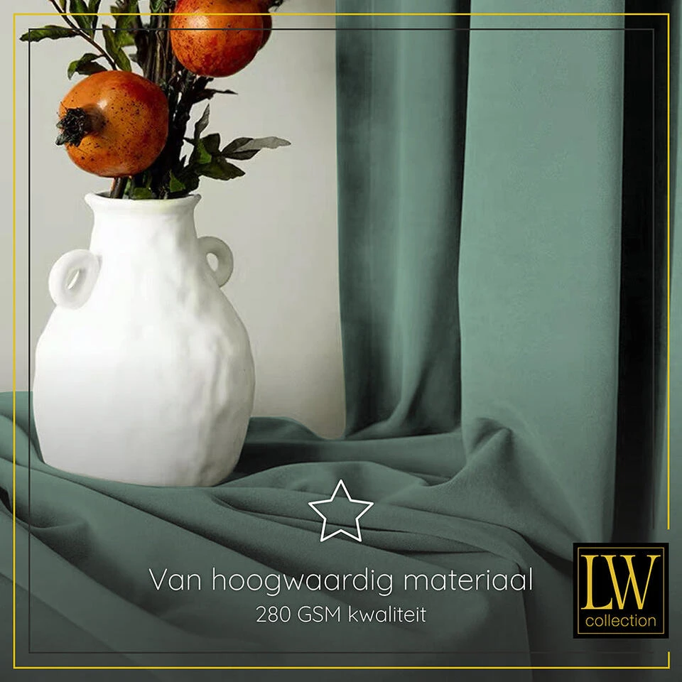 Ben jij ook op zoek naar prachtige verduisterende velvet gordijnen? De luxe verduisterende gordijnen van het merk LW Collection zijn volledig verduisterend en het materiaal is van hoge kwaliteit 280GSM. Dit maakt de gordijnen extra stevig en gaan hierdoor extra lang mee. Deze prachtige fluwelen velvet stof gordijnen passen bij ieder interieur en maken je woonkamer compleet.