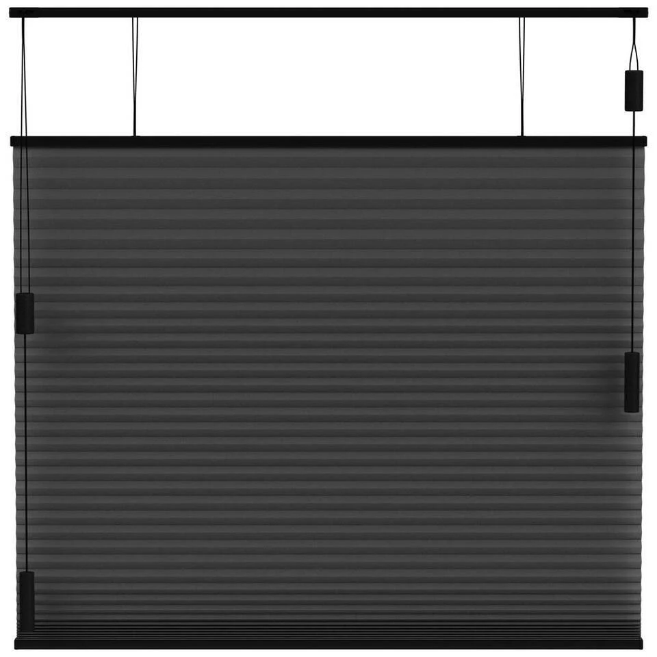 Dit mooie plisségordijn heeft een dubbele stof en is lichtdoorlatend. Het plisségordijn laat zacht gefilterd licht door en tegelijkertijd is het niet mogelijk om er doorheen te kijken, waardoor privacy bewaard blijft. De stof is zwart van kleur met een witte achterkant, waardoor licht en warmte extra goed gereflecteerd worden. Dit maakt het plisségordijn perfect voor de woonkamer of werkkamer. In 5 eenvoudige stappen bepaal jij de afmetingen en afwerking, waardoor je verzekerd bent van een plisségordijn naar jouw smaak! Let op: bij dit plisségordijn heb je een beperkte set aan afwerkingsopties. Ben je op zoek naar een bredere keuze in afwerkingsopties? Dan adviseren we om te kiezen voor een Fenstr plisségordijn.
