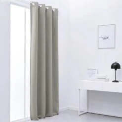 Het zandkleurige gordijn is volledig gemaakt van polyester. De bovenzijde is afgewerkt met metalen ringen. Hiermee kan het gordijn makkelijke worden opgehangen aan een houten of metalen roede. De raambekleding heeft een zicht werende werking. Privacy in je eigen woning is daarmee gegarandeerd.