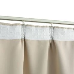 Het gordijn heeft een simpel, tijdloos ontwerp. Dankzij de metalen haken kan het gordijn eenvoudig aan gordijnrails opgehangen worden. Het gordijn is gemaakt van premium polyester en kan in de wasmachine worden gewassen. Let op, de gordijnroede is niet inbegrepen.