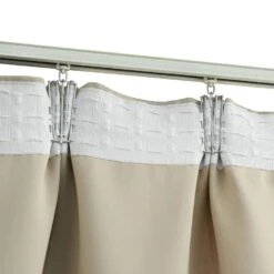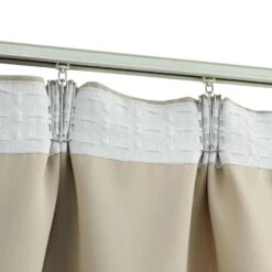 Het gordijn heeft een simpel, tijdloos ontwerp. Dankzij de metalen haken kunnen de gordijnen eenvoudig aan gordijnrails opgehangen worden. De gordijnen zijn gemaakt van premium polyester en kunnen in de wasmachine worden gewassen.