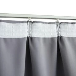 Het gordijn heeft een simpel, tijdloos ontwerp. Dankzij de metalen haken kunnen de gordijnen eenvoudig aan gordijnrails opgehangen worden. De gordijnen zijn gemaakt van premium polyester en kunnen in de wasmachine worden gewassen.