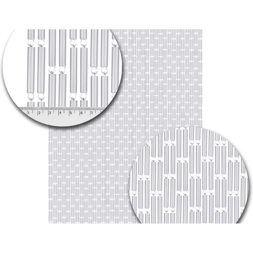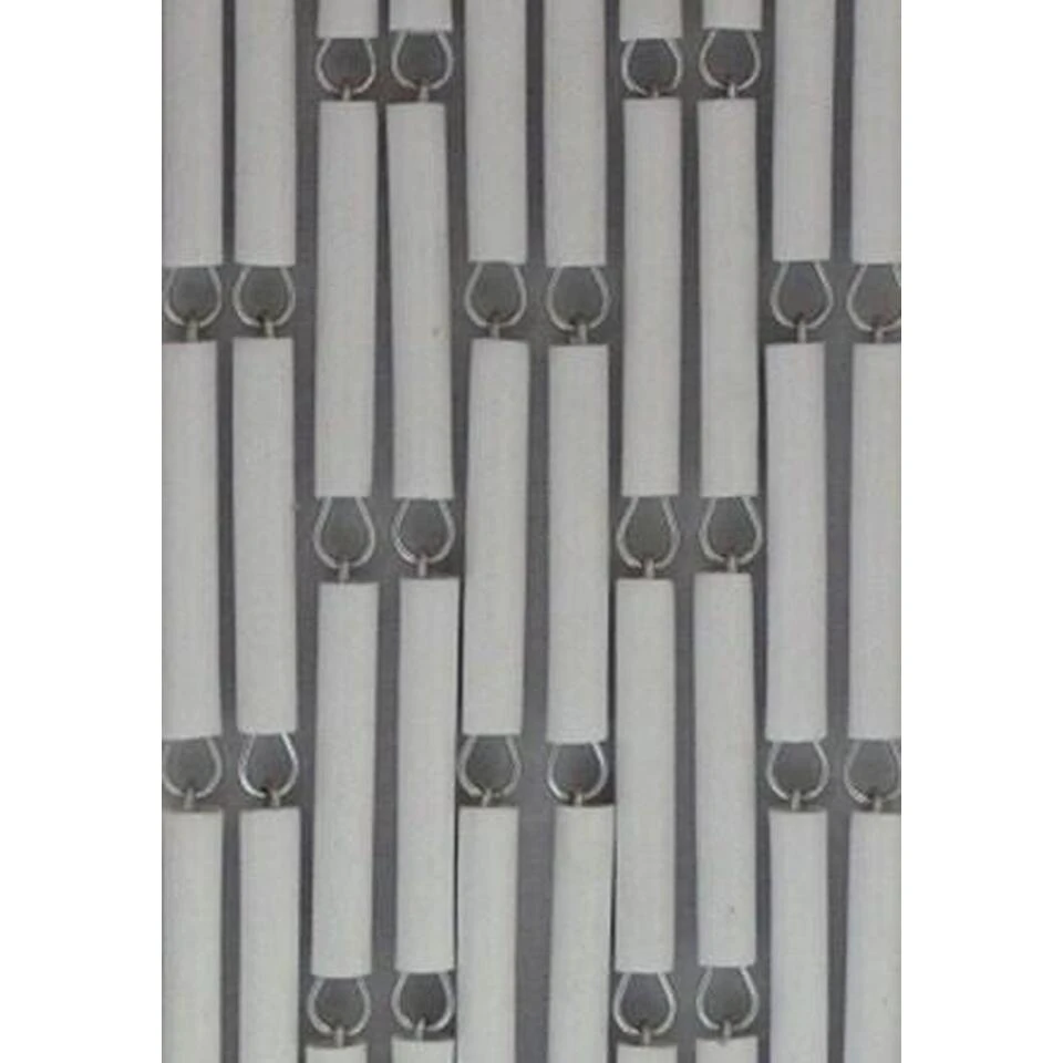 Tubes vliegengordijnen bestaan uit kleine hulzen. Deze hulsjes zijn ongeveer 6 centimeter lang. Ze zijn gemaakt van hoogwaardig polyethyleen dat heel lang meegaat en mooi blijft. Omdat deze kunststof zowel stevig als flexibel is, kunnen de hulzen goed tegen een stootje. Je hoeft dus niet bang te zijn dat de hulzen van je vliegengordijn beschadigen als er een keer een sliert tussen de deur komt te zitten. Zo geniet je jarenlang van je vliegengordijn! De slierten met smalle hulsjes hangen heel dicht tegen elkaar aan, waardoor ze vliegen en andere vliegende insecten, zoals bijen of wespen, uitstekend weren. De hulzen van dit vliegengordijn zitten aan elkaar vast met kleine roestvrij stalen (gegalvaniseerde) haakjes.