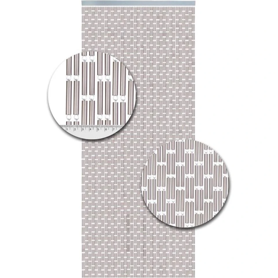 Tubes vliegengordijnen bestaan uit kleine hulzen. Deze hulsjes zijn ongeveer 6 centimeter lang. Ze zijn gemaakt van hoogwaardig polyethyleen dat heel lang meegaat en mooi blijft. Omdat deze kunststof zowel stevig als flexibel is, kunnen de hulzen goed tegen een stootje. Je hoeft dus niet bang te zijn dat de hulzen van je vliegengordijn beschadigen als er een keer een sliert tussen de deur komt te zitten. Zo geniet je jarenlang van je vliegengordijn! De slierten met smalle hulsjes hangen heel dicht tegen elkaar aan, waardoor ze vliegen en andere vliegende insecten, zoals bijen of wespen, uitstekend weren. De hulzen van dit vliegengordijn zitten aan elkaar vast met kleine roestvrij stalen (gegalvaniseerde) haakjes.